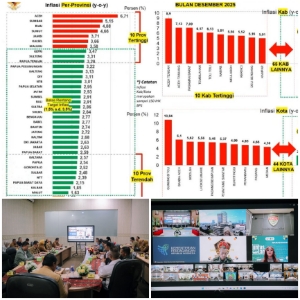 Data tersebut berdasarkan rilis Badan Pusat Statistik (BPS) pada 5 Januari 2026. Pencapaian itu terungkap dalam Rapat Koordinasi Pengendalian Inflasi Daerah pada Senin, 12 Jamuari 2026.
